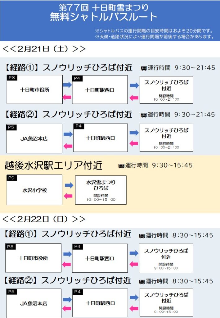 ・下記駐車場を2月21日(土)・22日(日)に開催する「第77回十日町雪まつり」の臨時駐車場として開放します。